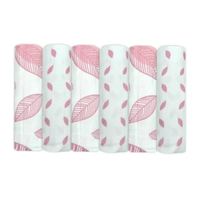 MuslinZ Muslin Cloths for Baby, 6 Pack of Bamboo & Organic Cotton Mix Premium Muslins Squares 70x70cm, Large Burp Cloth Babies, Newborn Essentials Baby (Pink Leaves)