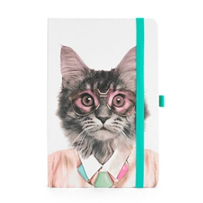Mustard A5 Hardcover Go Wild Cat Notebook, Dot Grid Pages, Elastic Closure, Pen Holder