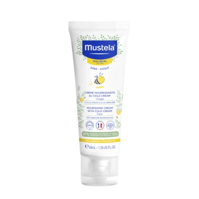 Nourish and hydrate your little one with the Mustela Nourishing Cream With Cold Cream, a 97% natural origin facial moisturiser for dry and dehydrated skin.. Suitable for use from birth onwards, Mustela Nourishing Cream With Cold Cream immediately moisturises your baby's face, while maintaining the skin's general well-being.. Proven to significantly increase hydration when first applied and up to eight hours after, the rich yet lightweight texture instantly melts into skin, leaving a delicate scent on your little one.. The formula itself gives your child's complexion a boost of hydration, with Mustela's moisturising Avocado Perseose® working to reinforce the skin's barrier while preserving the stem cell supply. The inclusion of ceramides and cold cream support this process by maintaining the skin's protective barrier.. But it doesn't stop there - this intensive cream also features naturally soothing shea butter, an antioxidant which softens and nourishes the epidermis, while vegetable oils are rich in essential fatty acids that keep your little one's skin soft, supple and hydrated.. Why We Love It. With a 98% natural origin formula, Mustela's Nourishing Cream cares for infant skin without overloading it with unnatural ingredients. Not only does this cream treat dryness on the surface level, but it also helps strengthen and maintain the skin's general health, to defend your child against natural external aggressions, which are typically more likely to irritate immature skin.. For practicality, it's made with a flip-top cap for easy use.. How To Use It. Apply in the morning and evening to a clean and dry face, especially on drier areas.. Works Well With. Mustela has a whole range of skincare products for children who suffer from dry skin - so why not explore their collection to nourish and protect your little one from head to toe?. Values. High tolerance, hypoallergenic and dermatologically-tested.. Paraben-free, phthalate-free and phenoxyethanol-free.
