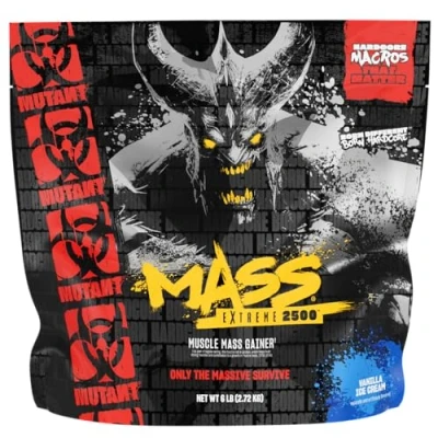 Mutant Mass Extreme Gainer Whey Protein Powder, Build Muscle Size & Strength with High Density Clean Calories, 6 lbs. (2.72 kg) (Vanilla Ice Cream