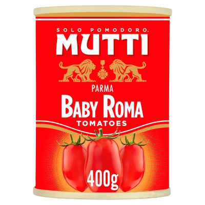Mutti Baby Plum Tomatoes 400g are sweet, firm, Italian-grown tomatoes packed whole in tomato juice with no added preservatives. Ideal for pasta sauces, seafood, or roasting, they offer vibrant flavour and authentic Italian quality in every can.