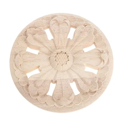 MUXSAM 1PC Carved Wooden Applique Round Wood Carving Home Decal Furniture Decoration Trim for Bed Cabinet,Creative DIY Door Frame Decorations Corner Woodcarving Decor Crafts 12x12cm