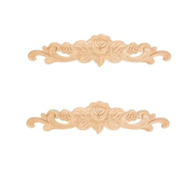 MUXSAM 2pcs 20 * 5cm Wood Carved Applique Mouldings Long Onlay Unpainted Rose Flower Door Home Decor Sculptures for British Farmhouse Style