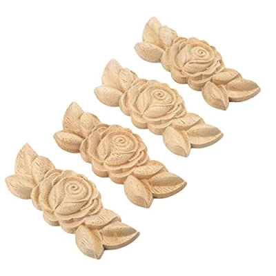 MUXSAM 4pcs 9 * 3.5cm Wood Carved Corner Applique Onlay Door Cabinet Rose Unpainted European Style