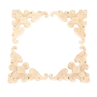 MUXSAM 4Pcs Carved Wood Decal 8x8cm Retro Onlay Decorative Applique Wooden Wall Art for European Cabinets Windows Doors Cupboards Mirrors