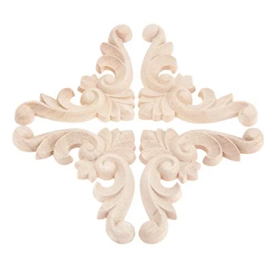 MUXSAM 4Pcs Simple Wood Carved Corner Decal Onlay Applique Unpainted Decoration for Wall Door Furniture 8cm