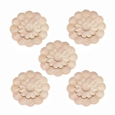 MUXSAM 5Pcs 8cm Floral Woodcarving Decal Corner Applique Frame Wall Door Cabinet Furnitrue Double Flower 2 Level Fower Pattern