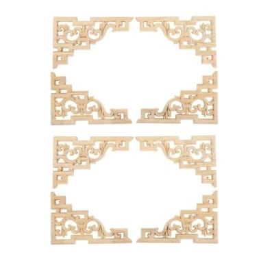MUXSAM 8pcs Wood Carved Mouldings Decal Corner Onlay Applique Frame for Furniture Wall Unpainted Home Cabinet Door Decor Craft 15x10cm