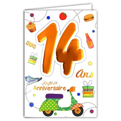 MV 69 2014 Card Happy Birthday Age 14 Years Kids Boys Girls Cupcake Scooter Vespa Gifts Cake Hamburger Basket