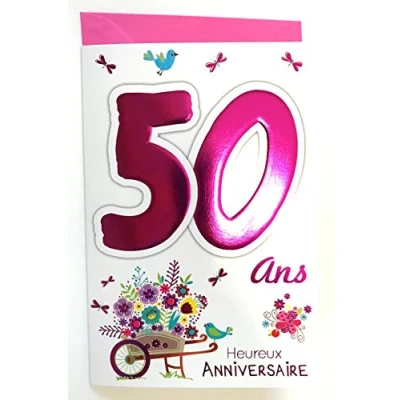 MV 69 2035 Age 50 Birthday Card Woman Design Wheelbarrow Flower Birds