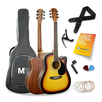 MX by 3rd Avenue Performance Series Acoustic Guitar Full Size Package with Sunburst Cutaway Spruce Top