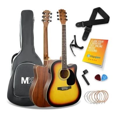 MX by 3rd Avenue Performance Series Electro Acoustic Guitar Full Size Package with Sunburst Cutaway Spruce Top
