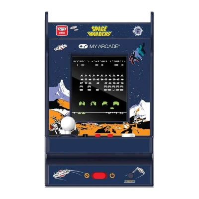 - Travel back in time with the classic Space Invaders game on this My Arcade micro player - It looks just like an arcade cabinet, but fits in the palm of your hand - Play to your heart's content in full colour on the 2.75" screen - It's powered by AA batteries or a USB-C cable (both sold separately) - You can use the built-in speaker or headphone jack and adjust the volume