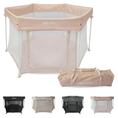 SUITABLE FROM BIRTH: Designed for children from birth to 15kg (approx. 3 years), the My Babiie Playpen ensures your little one or toddler has a safe & comfy place to play. SPACIOUS & OPEN: The generous footprint offers plenty of room for crawling, rolling or simply chilling with toys. The mesh side panels give great visibility so you can keep an eye on your child without being right next to them. MODERN, MINIMAL STYLE: The fabric finish offers a sleek, gender-neutral look that complements living rooms, nurseries or playrooms. No bright gimmicks - just understated quality. BREATHABLE MESH & SAFE DESIGN: Mesh sides allow airflow and letting light in. The solid, reinforced corners and base ensure stable structure; the clearly visible mesh walls signal that you can see baby from all angles. VERSATILE USE: Whether as a playpen for older babies or a safe rest area for younger ones, this unit adapts. It’s great for day-to-day indoor use and, with appropriate supervision, could even work outdoors (provided surface & shade are suitable). EASY TO SUPERVISE & ENGAGE: The mesh sides mean no hidden corners — you can interact, hand in toys or simply pop in and out of view. That promotes calm, confidence and connection. DIMENSIONS: Unfolded: 120L x 80W x 69H (cm), Folded: 50L x 14W x 68H (cm), Weight: 5kg. Mattress: 104L x 69W x 3H (cm)