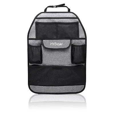 MULTIPLE STORAGE OPTIONS - Keep your car neat and tidy with the My Babiie Car Seat Organiser. Magazine pockets, mesh pockets for smaller items, mesh drinks holders and an extra wide centre pocket provide plenty of storage options to keep @@@lTqz0CNd/G3ItN/ePxYFm2nM021U0L7b@@@, toys, snacks and drinks organised. 2-IN-1 FUNCTIONALITY – Our back seat organiser has 8 different compartments to keep your car clean and organised. It also doubles as a kick mat to protect your car seats from muddy footprints, ensuring a comfortable travel experience. EASY TO FIT - Quick and easy to install, the top and bottom adjustable straps attach to the front car seat. Designed to fit most standard passenger and driver car seats with headrests. STURDY & DURABLE - Made with high quality materials and dust proof fabric, this car seat organiser will ensure a worry-free travel experience. Brilliantly unique design, Universal fit