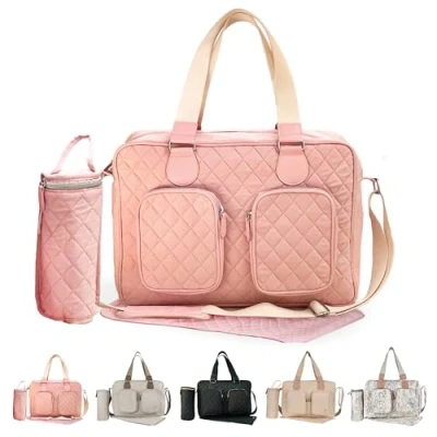 My Babiie Changing Bag Tote With Insulated Bottle Holder, Portable Mat, Baby Travel Bag, Nappy Messenger 2 Front Pockets Pink Quilted