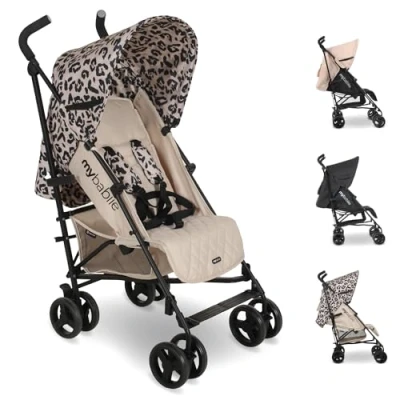 My Babiie MB01 Stroller from Birth to 4 Years (22kg), Lightweight & Compact Umbrella Fold, Travel Buggy for Toddlers Fawn Leopard