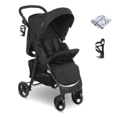 My Babiie MB30 Pushchair from Birth to 4 Years (22kg), Easy Compact Fold, Large Shopping Basket, Adjustable Handle, Stroller Includes Cup Holder, Rain Cover Black & Grey