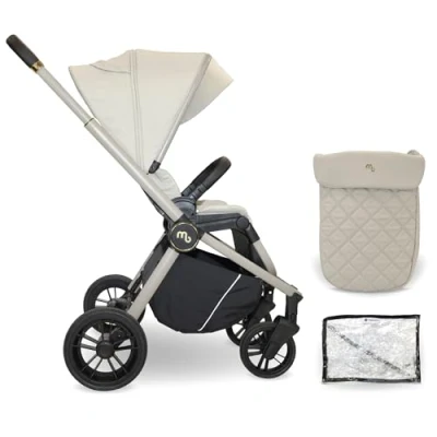 My Babiie MB450 Pushchair from Birth to 4 Years (22kg), Parent & World Facing, Wheel Suspension, Large Basket, XL Canopy, Foldable, Compact, Stroller with Footmuff, Rain Cover Ivory