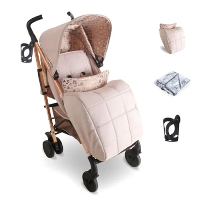 My Babiie MB51 Stroller from Birth to 4 Years (22kg), Lightweight, Umbrella Fold, Travel Buggy for Toddlers, Pushchair Includes Footmuff, Cup Holder, Rain Cover Pink Leopard