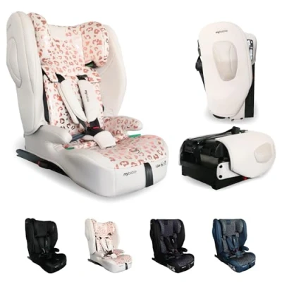 My Babiie MBCS80 Foldable Toddler to Booster R129 Child Car Seat ISOFIX with Top Tether, Harness, 76 150cm (Approx. 9 36kg, 15 Months 12 Years), i Size, Group 1/2/3, Forward Facing Pink Leopard