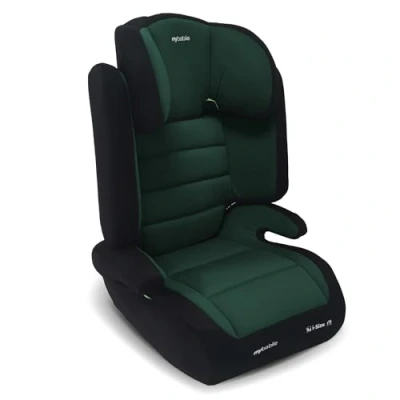 My Babiie MBCSB30 Highback Booster Car Seat 100 150cm (Approx. 4 12 Years, Group 2/3), i Size R129, Adjustable Child High Back Seat, Padded, 8 Position Headrest Green & Black