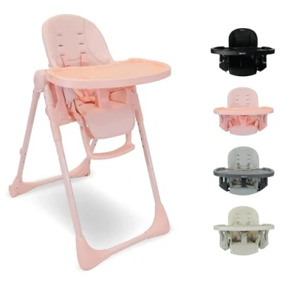 My Babiie MBHC9 Highchair from Birth Newborn to 3 Years (15kg), Adjustable, 5 Recline Positions, 7 Height Settings, Removable Tray, Padded Seat, Foldable, Chair for Baby & Toddler Pink