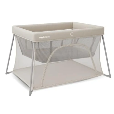 My Babiie MBTC3 Air Light 3 in 1 Travel Cot, Bassinet, Playpen Lightweight, from Birth to 15kg, Foldable, Bag, Padded Mattress, Mesh Sides Ivory