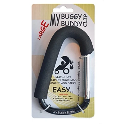My Buggy Buddy Large Clip, Hook or Carabiner For Pram/ Stroller/ Pushchair, Foam Coating To Prevent Damage, Can Hold Up 5 kgs, Size, Black