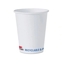 Thick single wall cup. Natural card material. Disposable cups which can be recycled. Cups are paper based with a water based inner lining. Suitable for use in vending machines. Capacity: 7oz. Colour: White. Pack of 100.