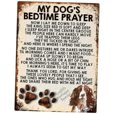 MY DOG'S BEDTIME PRAYER RETRO STYLE METAL TIN SIGN/PLAQUE (288DRS) English Springer Spaniel brown
