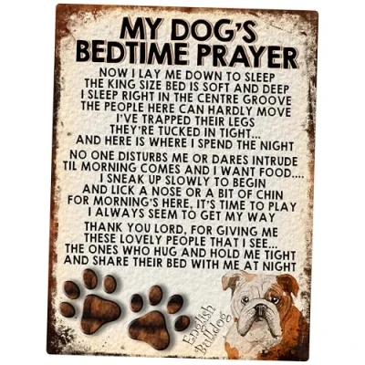 MY DOG'S BEDTIME PRAYER RETRO STYLE METAL TIN SIGN/PLAQUE (ENGLISH BULLDOG)