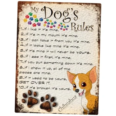 MY DOG'S RULES RETRO STYLE METAL TIN CHIHUAHUA SIGN/PLAQUE THEME 10" X 8" (94DRM)