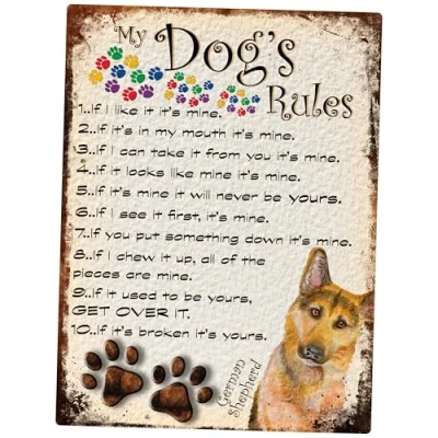 MY DOG'S RULES RETRO STYLE METAL TIN SIGN/PLAQUE GERMAN SHEPHERD THEME 8" x 6" (109DR)