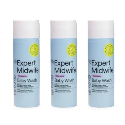 My Expert Midwife Baby Cleansing Wash, Newborn Bath & Body Sensitive Skin + Fragrance Free, Dematalogically Tested, Pack of 3