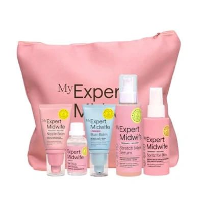My Expert Midwife Mum to Be Pregnancy and Postnatal Maternity Essentials for hospital bag with Fantastic Skin Elastic, Peri Prep Your Bits, Spritz No Harm Nipple Balm & Bum