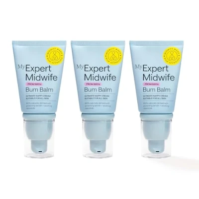MY EXPERT MIDWIFE BOTTOM BALM TRIO: Midwife developed, 100% naturally derived nappy balm for delicate skin on baby's bottom. Most babies experience nappy rash at some point, if not regularly, which can mean soreness, redness, and irritation. This rich but simple nappy cream provides gentle, effective relief and protection which helps to prevent skin damage and soreness. FORMULATED WITH THE HIGHEST MEDICAL GRADE LANOLIN: A soothing, breathable moisturiser and a protective barrier against friction/chafing. 4 MORE NATURAL INGREDIENTS: Calendula flower extract for soothing redness, irritation and soreness. Coconut oil for its deep moisturising and anti-microbial properties. Sweet almond oil to nourish and promote smooth, healthy skin, and sunflower oil for Vitamin E, to help nourish and protect the delicate skin. EFFECTIVE NAPPY CREAN SOFTENS & PROTECTS: A gentle, deeply moisturising nappy rash ointment which is suitable for regular use at each nappy change. Suitable for newborn babies 0 Months +. MIDWIFE DEVELOPED: Part of the midwife developed range for pregnancy, birth and new mums, including the multi-award-winning perineal relief spray Spritz for Bits.