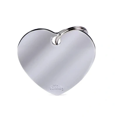 My Family Personalized Dog ID Tag Made in Italy, Large Heart Chrome Plated Brass, Free Engraved Nameplate, Aluminium, Basic Collection, 37x32mm