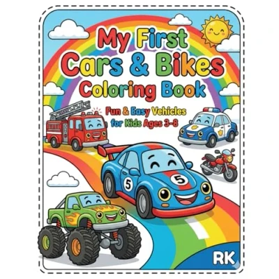 My First Cars & Bikes Coloring Book: Fun Easy Vehicles for Kids Ages 3 8 Cute Cars, Trucks