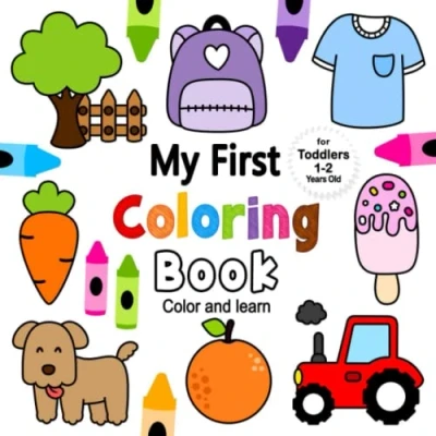 My First Coloring Book For Toddlers 1 2 Years Old: Fun and Easy Kids 1+ with Animals, Vehicles, Sweets, Fruits Vegetables A Activity Preschool Kindergarten