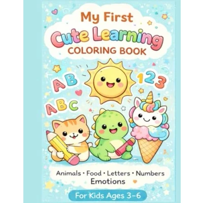 My First Cute Learning Coloring Book: Fun & Easy Pages for Kids Ages 36 Animals, Food, ABCs, Numbers More