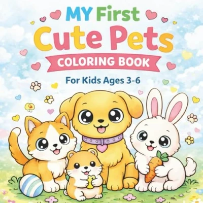 My First Cute Pets Coloring Book: Simple and Fun Pages for Kids Ages 36 with Adorable Puppies, Kittens, Bunnies More