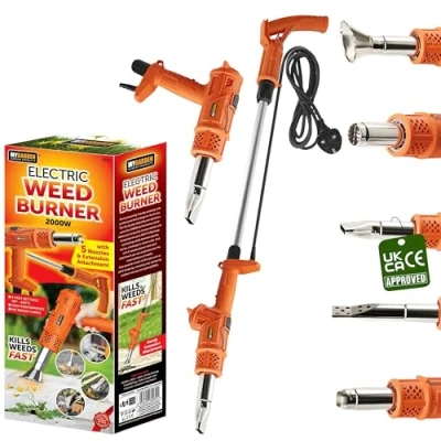 𝗠𝘂𝗹𝘁𝗶-𝗙𝘂𝗻𝗰𝘁𝗶𝗼𝗻𝗮𝗹 𝗘𝗹𝗲𝗰𝘁𝗿𝗶𝗰 𝗪𝗲𝗲𝗱 𝗕𝘂𝗿𝗻𝗲𝗿 – This electric weeder comes with 4 interchangeable nozzles, making it a weed burner, electric weed remover, BBQ lighter, and hot air gun in one. Easily switch functions to tackle weeds, light a grill, or complete DIY projects. The weed wand design ensures precision, helping you get rid of weeds quickly and effectively. 𝗘𝗿𝗴𝗼𝗻𝗼𝗺𝗶𝗰 & 𝗦𝗮𝗳𝗲 𝗪𝗲𝗲𝗱 𝗥𝗲𝗺𝗼𝘃𝗲𝗿 𝗧𝗼𝗼𝗹 – The weed burner electric weed killer features an ergonomic handle for a secure, comfortable grip, making long sessions easy. The extended handle keeps you at a safe distance from the heat while ensuring optimal control. Perfect for all users, this electric weed remover is lightweight and designed for effortless operation. 𝗘𝗻𝘃𝗶𝗿𝗼𝗻𝗺𝗲𝗻𝘁𝗮𝗹𝗹𝘆 𝗙𝗿𝗶𝗲𝗻𝗱𝗹𝘆 𝗪𝗲𝗲𝗱 𝗞𝗶𝗹𝗹𝗲𝗿 𝗕𝘂𝗿𝗻𝗲𝗿 – Unlike gas-powered weed killers, this electric weed remover burner operates with no open flame, no gas, and no toxic chemicals. Safe for the environment, pets, and humans, this weed remover tool electric offers a clean and efficient way to eliminate weeds while protecting your garden. 𝗛𝗶𝗴𝗵-𝗣𝗲𝗿𝗳𝗼𝗿𝗺𝗮𝗻𝗰𝗲 𝗘𝗹𝗲𝗰𝘁𝗿𝗶𝗰 𝗪𝗲𝗲𝗱 𝗦𝘄𝗲𝗲𝗽𝗲𝗿 – Powered by 2000W and 230V, this weed killer burner heats up to 650°C, ensuring rapid weed removal. The intense heat penetrates deep, killing weeds from the roots. If not burned completely, weeds will dry out and die within days. Perfect for driveways, patios, and gardens! 𝗘𝗮𝘀𝘆-𝘁𝗼-𝗨𝘀𝗲 𝗘𝗹𝗲𝗰𝘁𝗿𝗶𝗰 𝗪𝗲𝗲𝗱 𝗞𝗶𝗹𝗹𝗲𝗿 𝘄𝗶𝘁𝗵 𝟭.𝟴𝗠 𝗖𝗮𝗯𝗹𝗲 – This flame thrower path weed killer comes with all necessary accessories for effortless use. Simply attach your preferred nozzle, plug it into a UK socket, and start burning! The 1.8-meter cable provides excellent mobility, making it convenient to eliminate unwanted weeds in large garden areas., Weight: 2.9101018584 pounds, Manufacturer: My Garden Outdoor Living