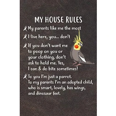 My House Rules: 110 Blank Lined Paper Pages 6x9 Personalized Customized Composition Notebook Journal Gift For Cockatiel Parrot Bird Owners and Lovers