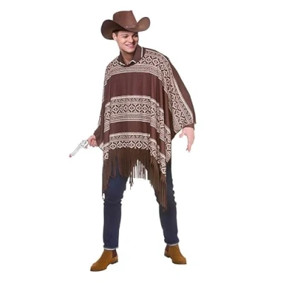 Ride on through the Wild West when you wear our Mens Cowboy Poncho complete with cowboy hat This cowboy costume includes the brown poncho and a texas style cowboy hat Our mens western fancy dress comes one size, to fit most adults Our cowboy fancy dress is a great choice for themed parties, cosplay and Halloween, Manufacturer: My Illusions