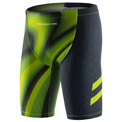 MY KILOMETRE Boy's Jammer Swimsuit Kids Trainning Swim Shorts with Drawstring Endurance Swimming Trunks Green M