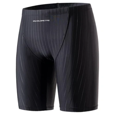 MY KILOMETRE Boy's Jammer Swimsuit Kids Trainning Swim Shorts with Drawstring Endurance Swimming Trunks Pure Black L