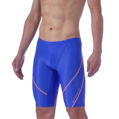 MY KILOMETRE Men's Swimsuit Jammer Solid Swim Jammers Endurance Long Racing Training Swimsuit, Light Blue, Large