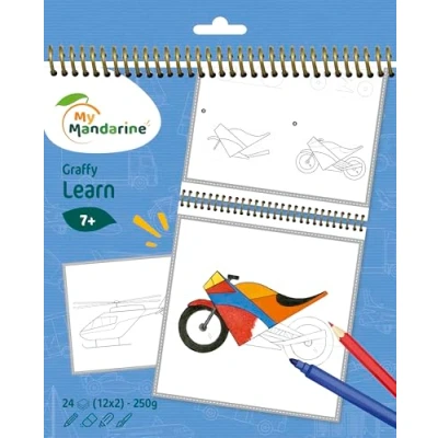 TECHNIQUE: your child will learn to draw by following the step-by-step instructions on each page. 24 SHEETS: 12 patterns repeated 2 times, 24 blank sheets. PAPIER DESSIN CLAIREFONTAINE 250 g: Colouring with felt-tip pens or Coloured pencils. Thick, it supports very strong Colouring. SPIRAL NOTEBOOK: 360° opening for easy Colouring (with the pattern opposite the blank page). GROUP ACTIVITIES: perfect for birthday parties and community events.... PEFC certified. CONFORMS TO EC STANDARDS. From age 5.