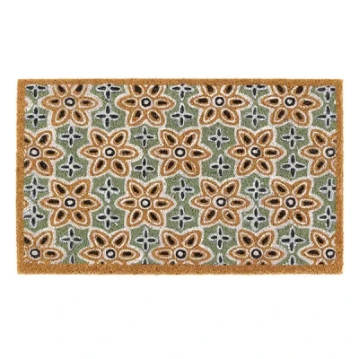 My Mat Printed Coir Sage Green Woodblock Print Door Mat, Perfect for Indoor and Outdoor Use, Large Welcome Front Door, Entryway Patio 45x75cm